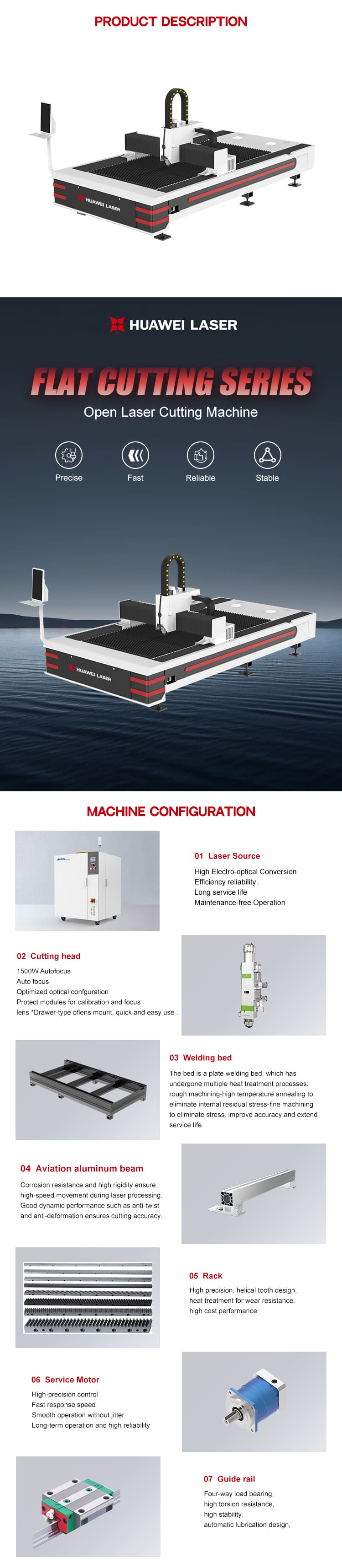 3.ブランドサーボシステムを備えた駆動および伝達システムが採用され、リニアレールによってガイドされ、高速、高精度、高信頼性の機器を保証します。