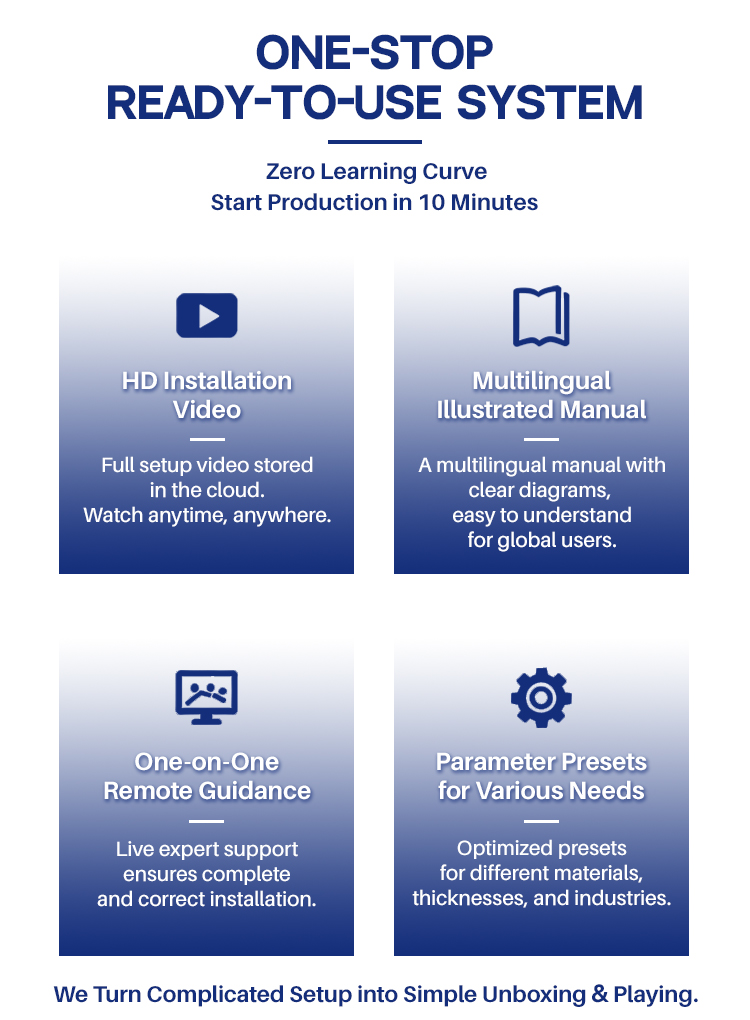A: 当社の技術者が出荷前に機械を設置しました。一部の小さな部品の取り付けについては、詳細なトレーニングビデオ、ユーザーマニュアルを機械と一緒にお送りします。 95% の顧客は独学で学習できます。