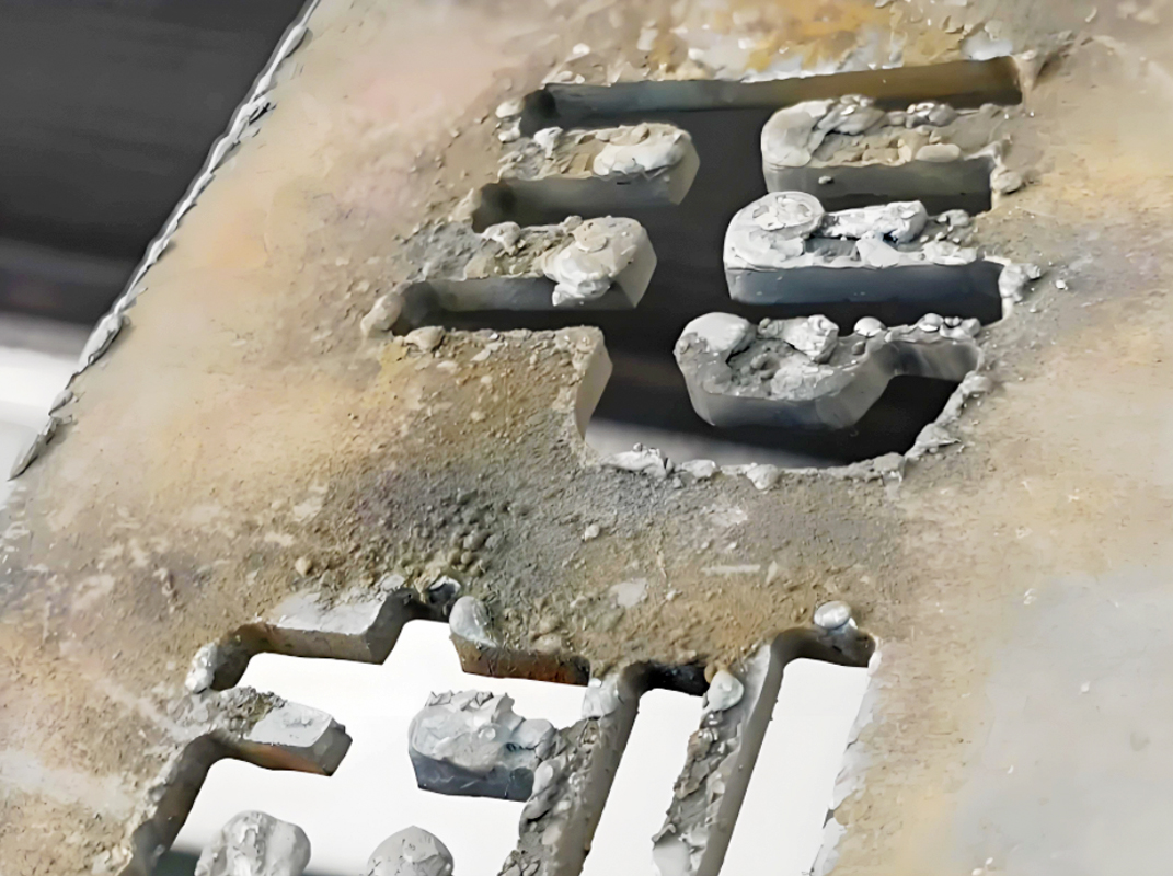 切断が過度にゆっくりと融合すると溶け込みが生じ、切断された表面に残留スラグが残ります。