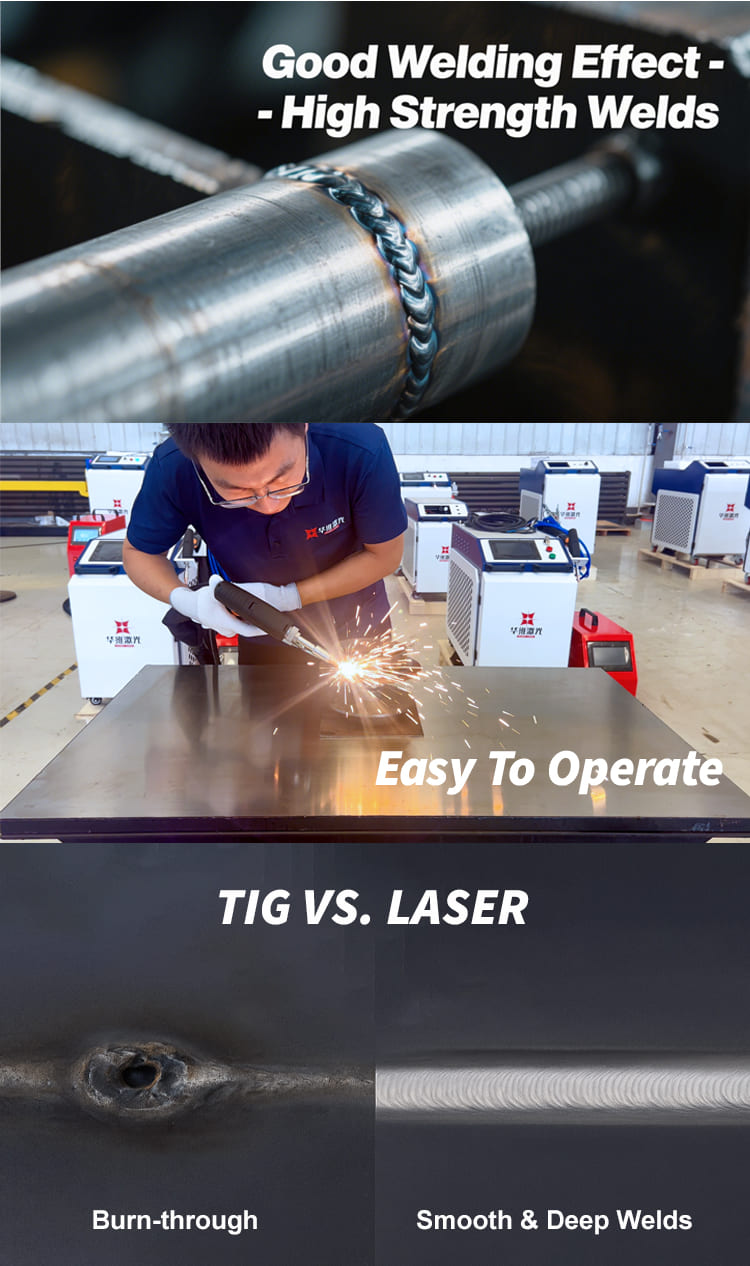 ★良好な溶接効果:美しく滑らかな溶接、気孔がないか、ほとんどなく、熱影響部が小さい。溶接の強度は母材自体に達するか、それを超える場合があります。